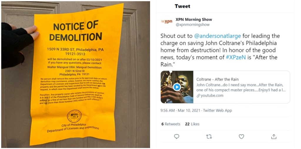 A developer’s plan to demolish the building with which the John Coltrane House shares a party wall was undone after I sounded the alarm.