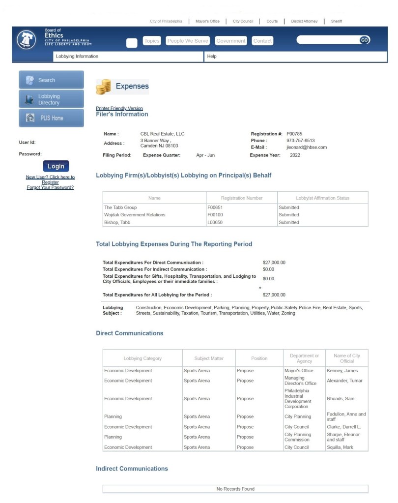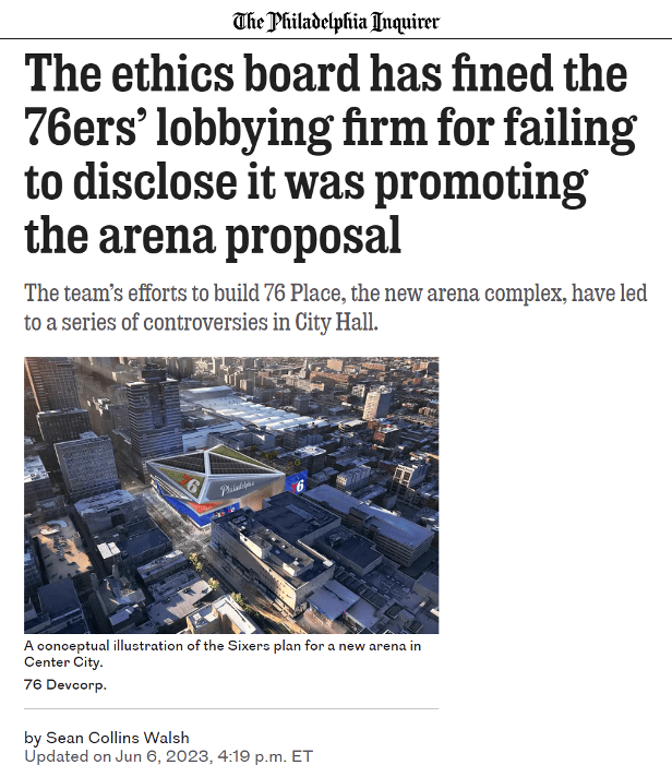 An investigation by the Philadelphia Board of Ethics found that Sixers’ lobbyists met with Mayor Kenney and other City officials as early as April 2022 – three months before the public announcement.