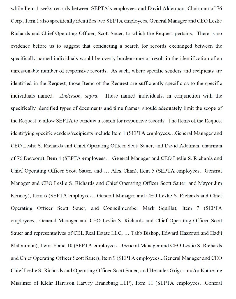 The OOR found that the request was partially specific and named names, including billionaire David Adelman, Sixers co-owner and 76 Place hype man, and City Councilmember Mark Squilla.